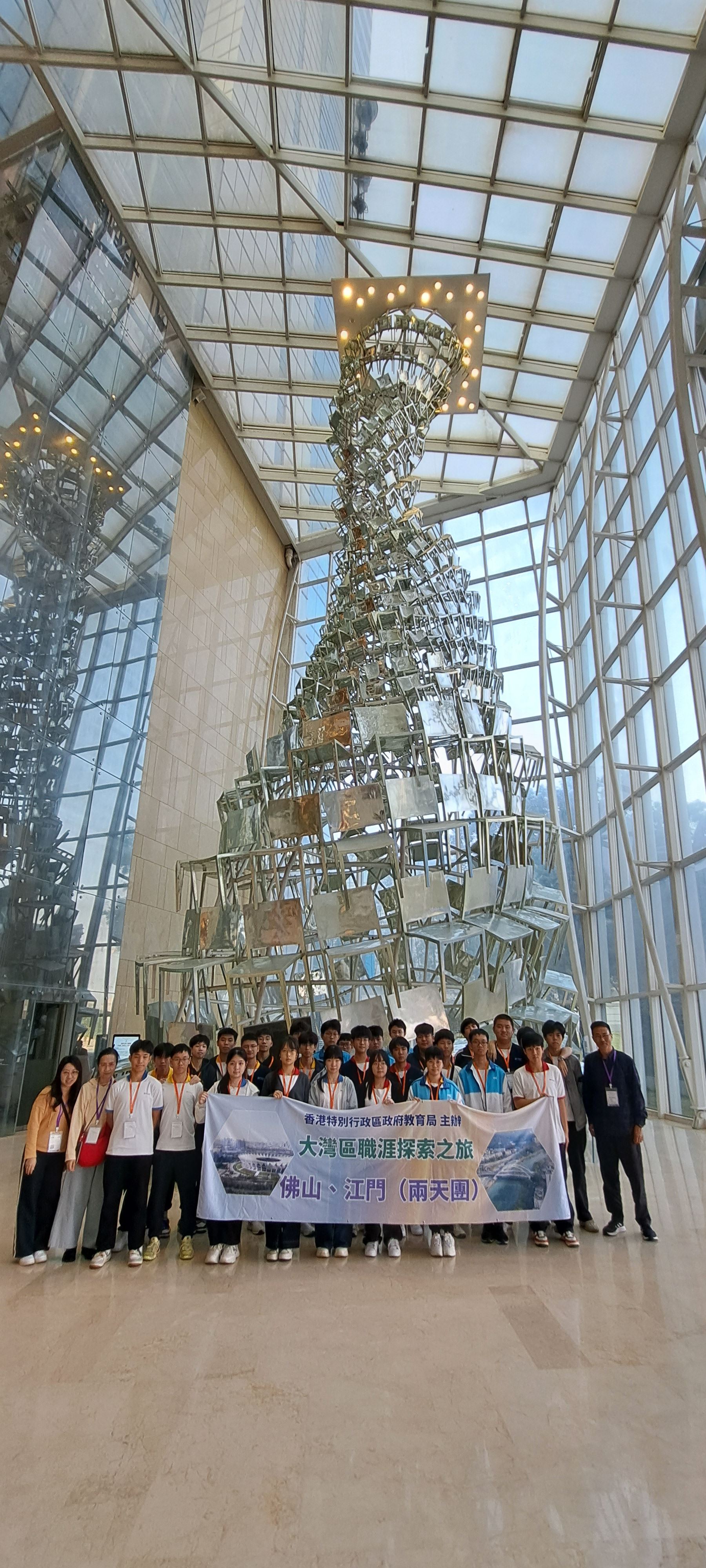 升學及就業輔導組於12月8日-9日安排學生參加教育局「大灣區職涯探索之旅」,到了佛山及江門考察企業,參觀了南海青創家、新明珠集團、羅浮宮家具博覽中心、珠西先進產業優秀人才創業創新園、澳新食品有限公司及廣東新寶堂生物科技有限公司,從而對香港學生於內地創業及就業有更進一步認識。