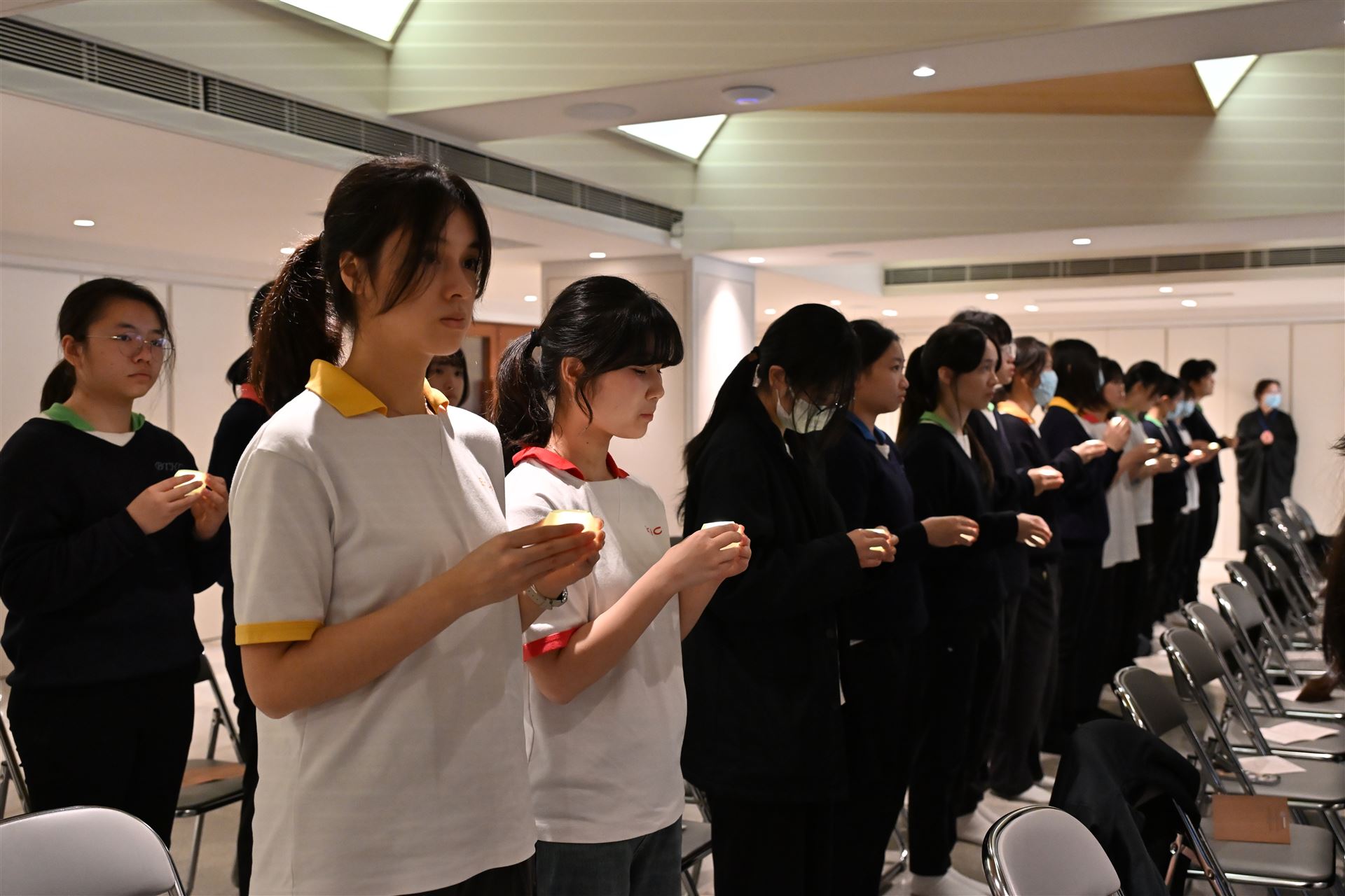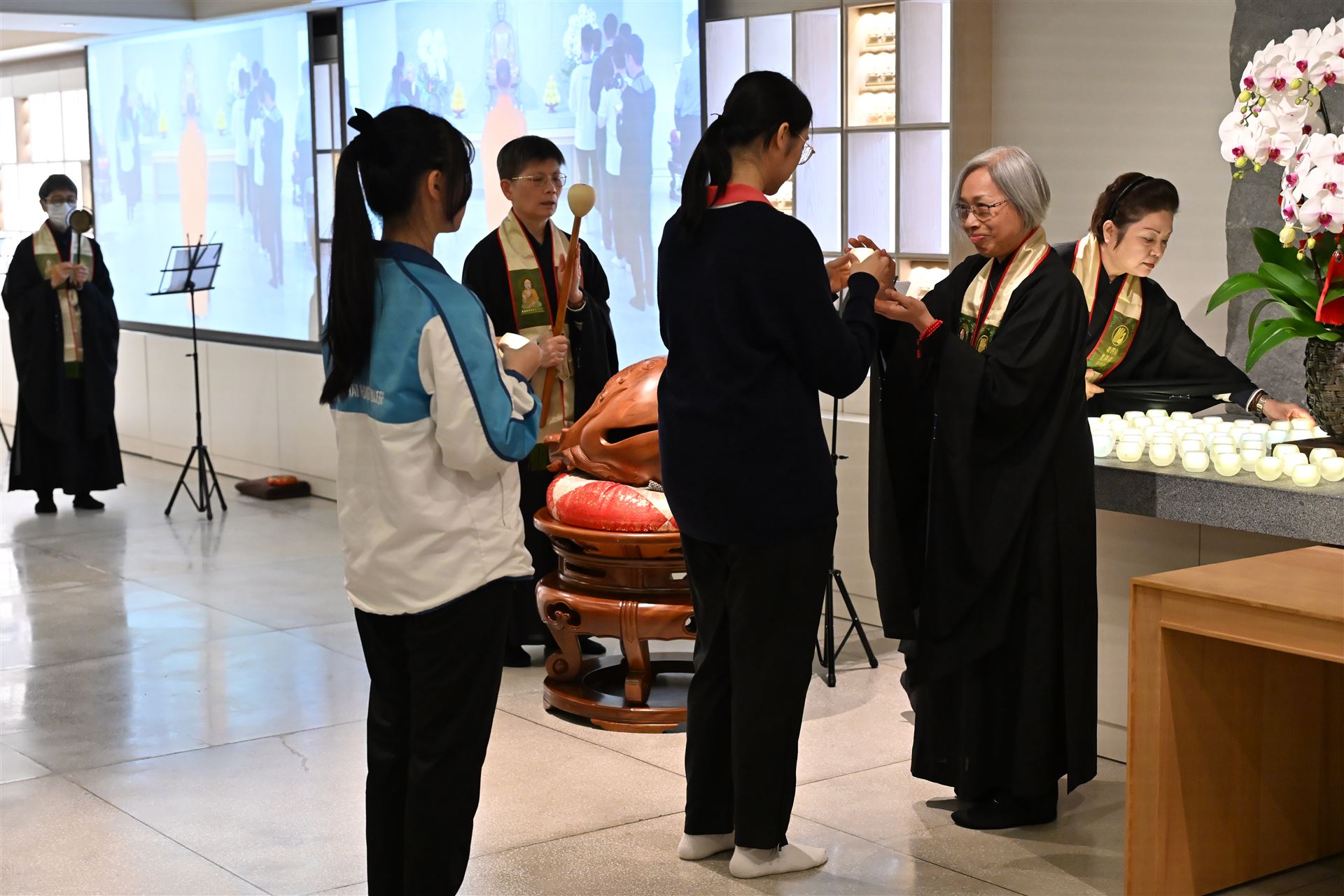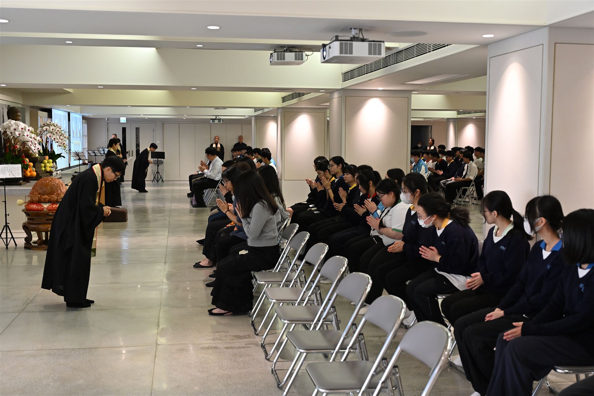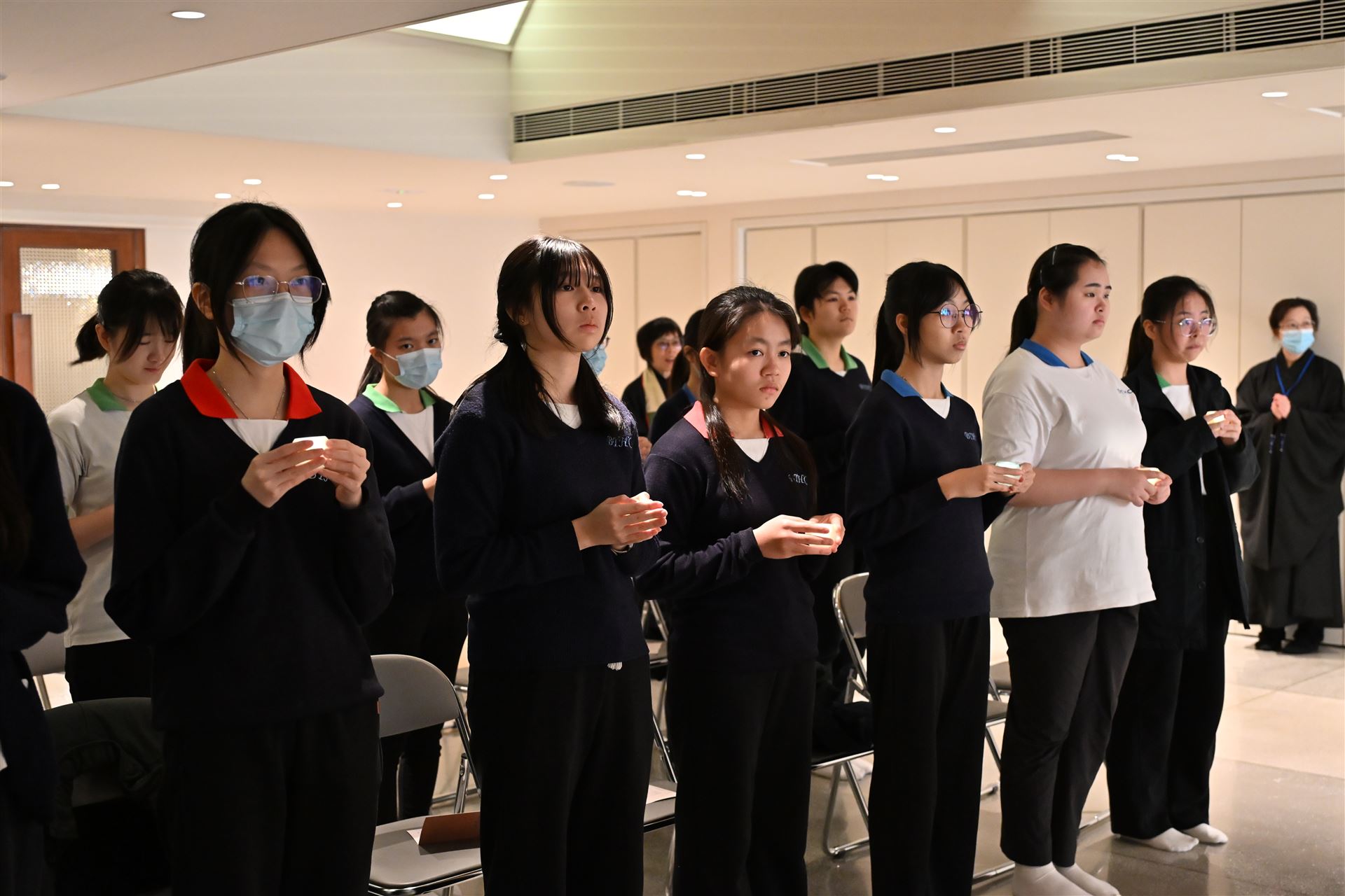 本屆中六級同學在副校長、班主任和老師的陪同下,齊集法鼓山香港道場,參與一年一度的師生祈福法會。 法會迄今已舉辦了十多年,理念是讓同學在努力備試時,能憑藉觀世音菩薩的慈悲與願力,使內心平靜,降伏游思妄念,堅定意志,在文憑試考獲理想成績。 感恩法鼓山香港道場住持演柱法師,與一眾菩薩義工共同成就是次祈福法會。祝願各位中六同學在進行傳燈儀式時,能夠將一片光明帶進內心,既光照自己,亦點亮他人。常懷佛法,用智慧處世,以慈悲待人。 大家DSE加油!!!