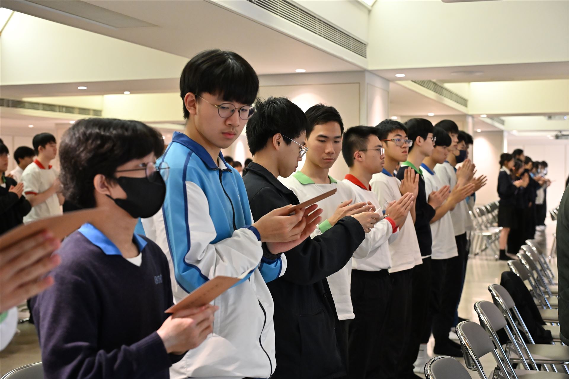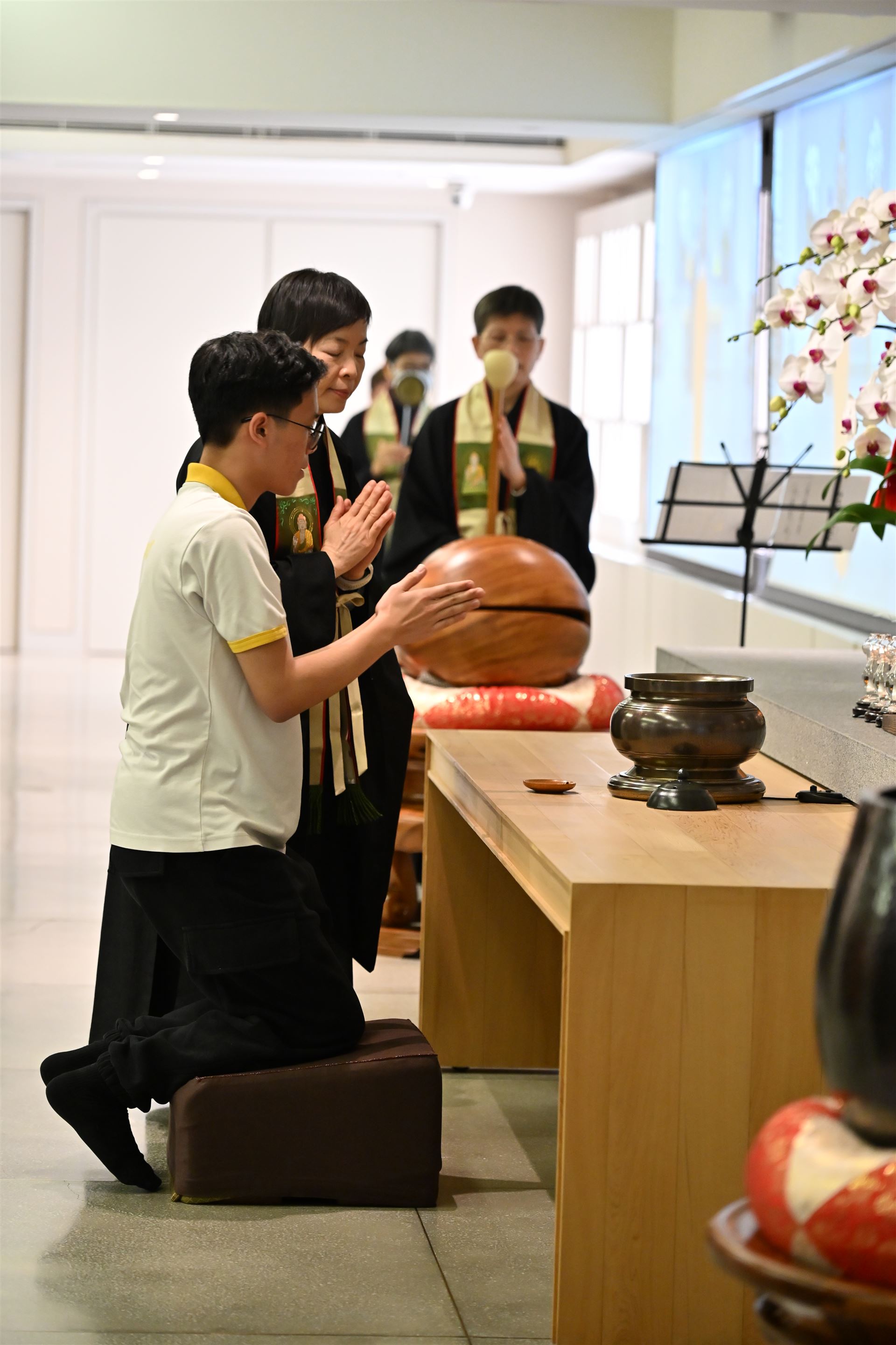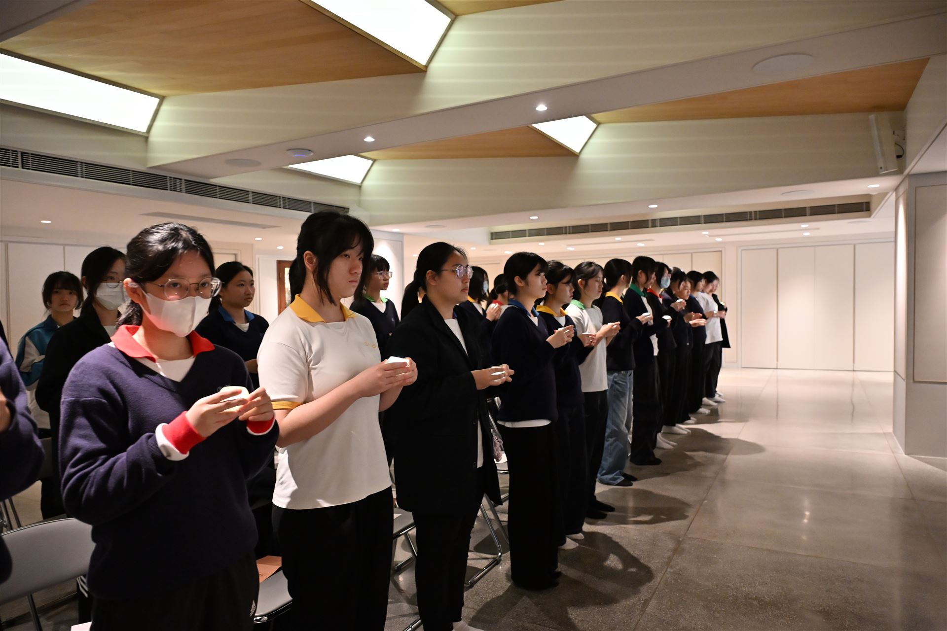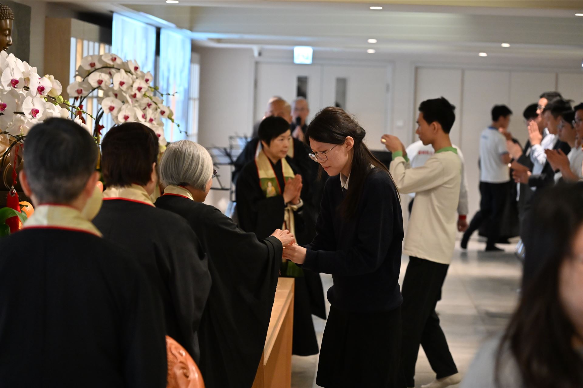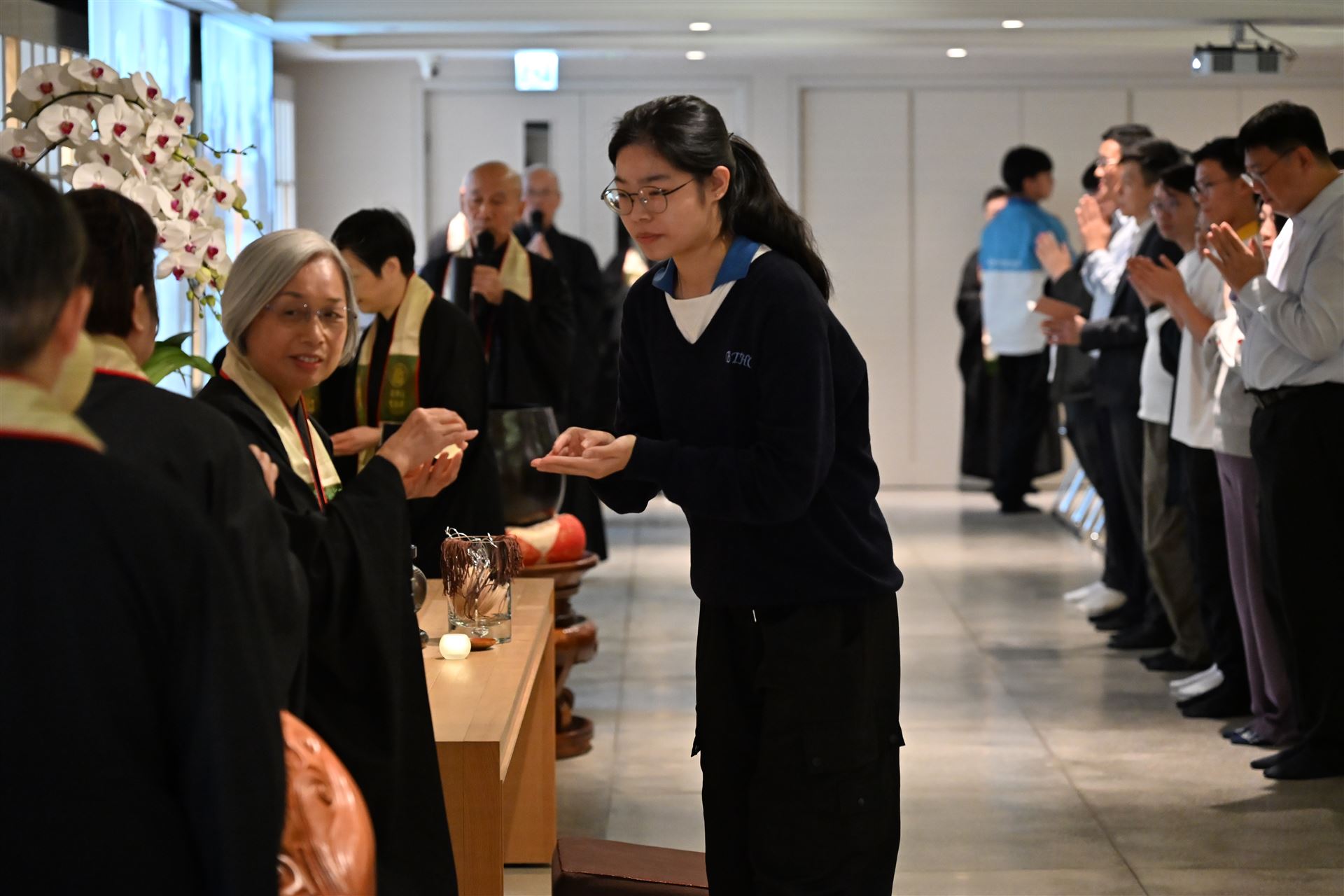 本屆中六級同學在副校長、班主任和老師的陪同下,齊集法鼓山香港道場,參與一年一度的師生祈福法會。 法會迄今已舉辦了十多年,理念是讓同學在努力備試時,能憑藉觀世音菩薩的慈悲與願力,使內心平靜,降伏游思妄念,堅定意志,在文憑試考獲理想成績。 感恩法鼓山香港道場住持演柱法師,與一眾菩薩義工共同成就是次祈福法會。祝願各位中六同學在進行傳燈儀式時,能夠將一片光明帶進內心,既光照自己,亦點亮他人。常懷佛法,用智慧處世,以慈悲待人。 大家DSE加油!!!