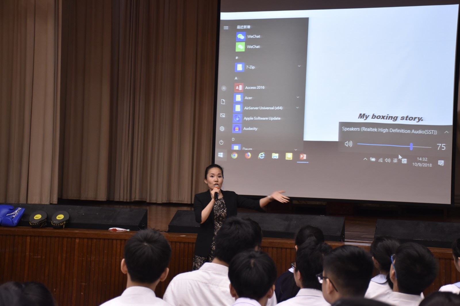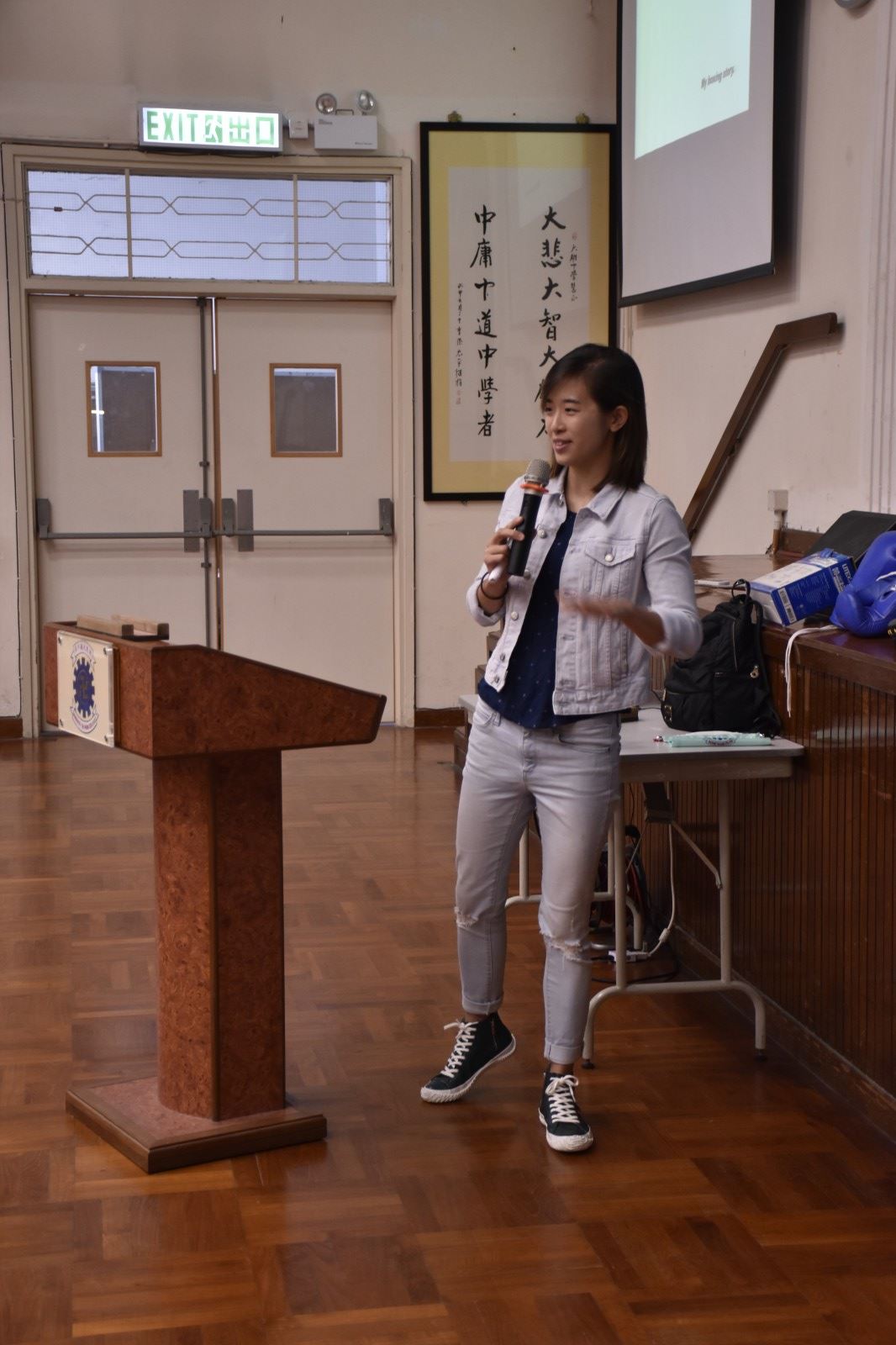 Form 5 students were learning about Sports in September and they were reading articles on professional boxing and about the Wonder Kid Rex Tso. In order to extend our students’ English learning experience, we invited Hong Kong’s first professional female boxer Ms. Sandy Lam to do a sharing with our students.