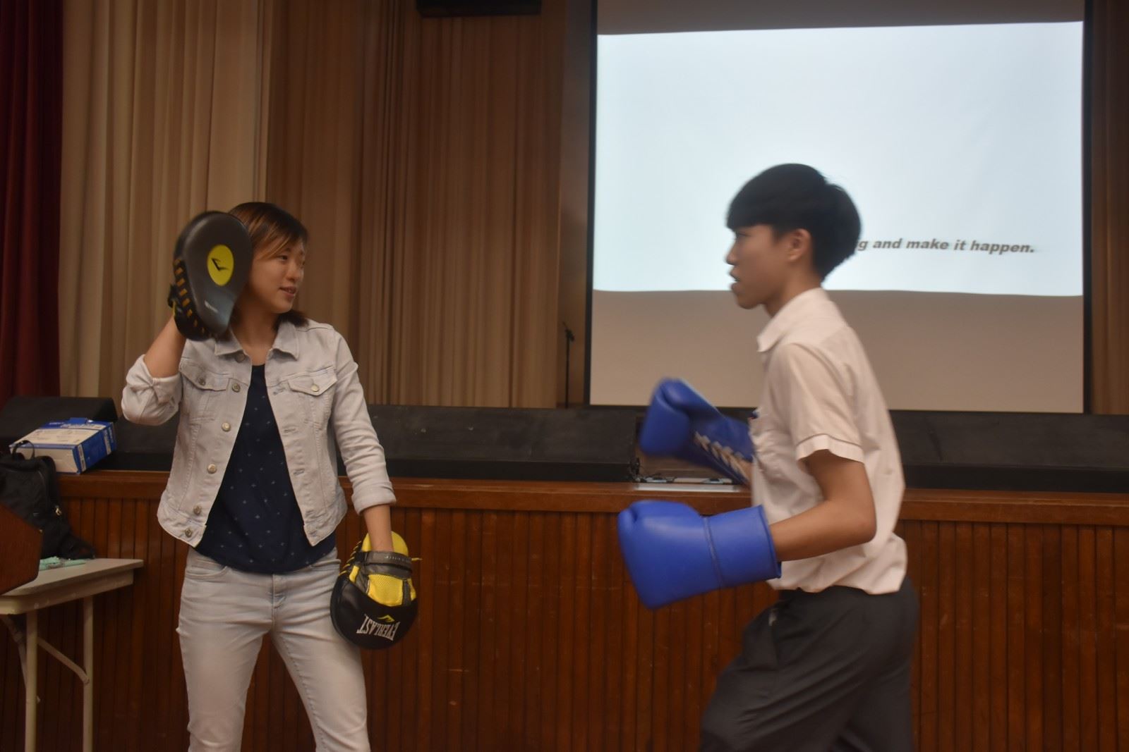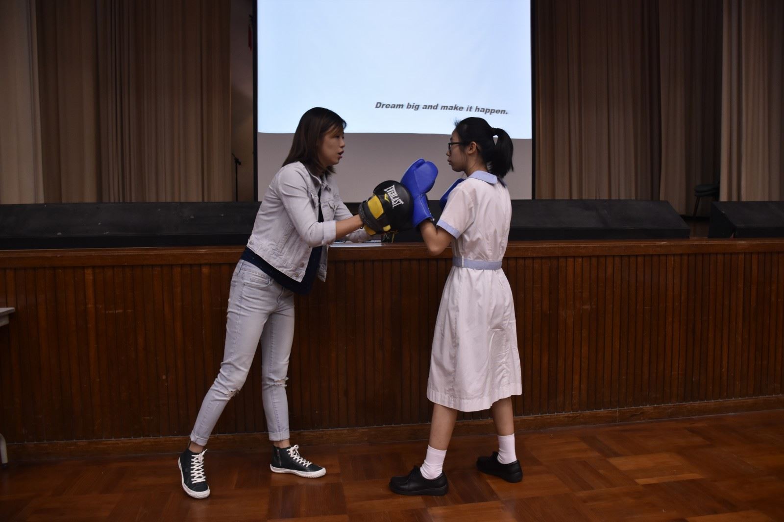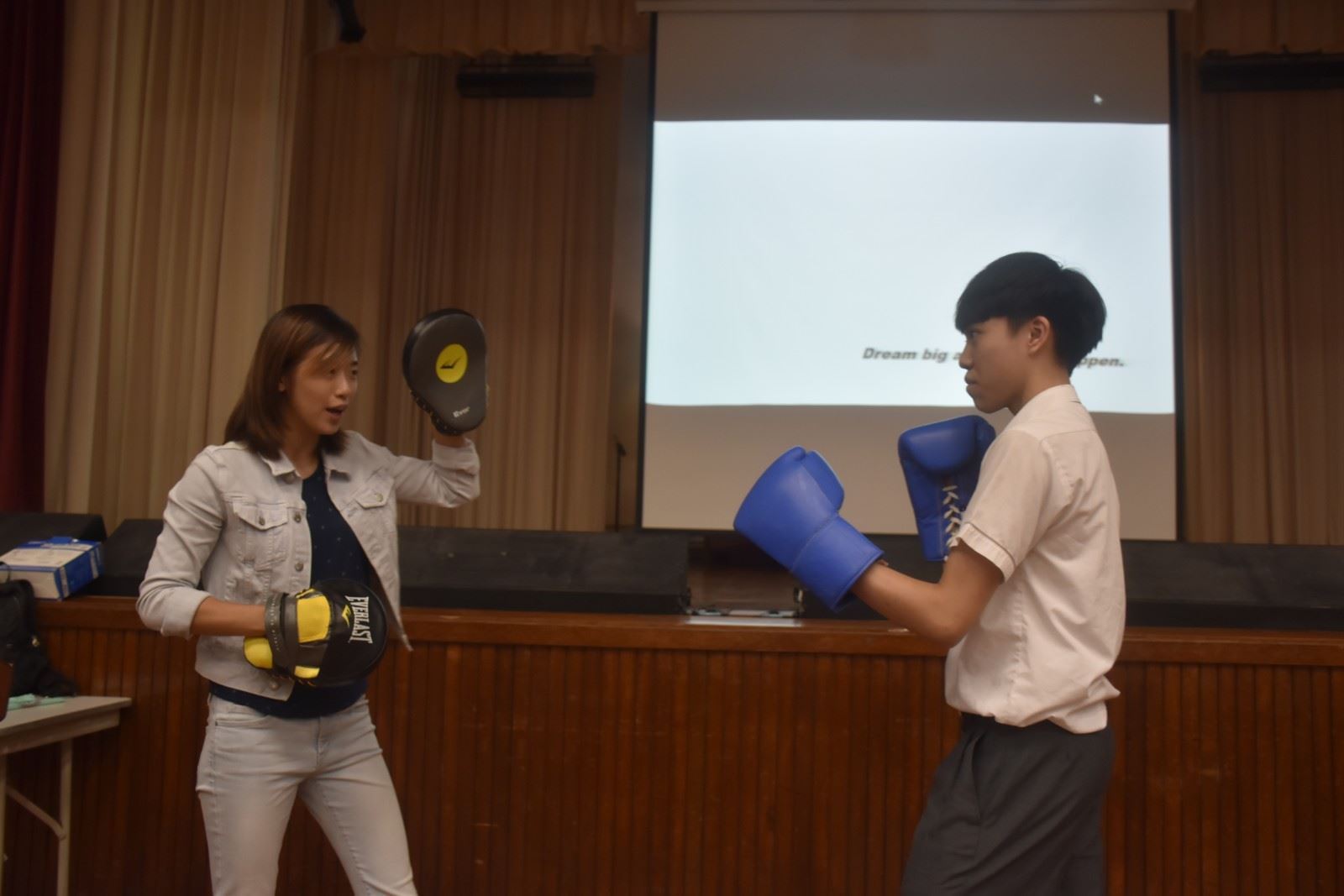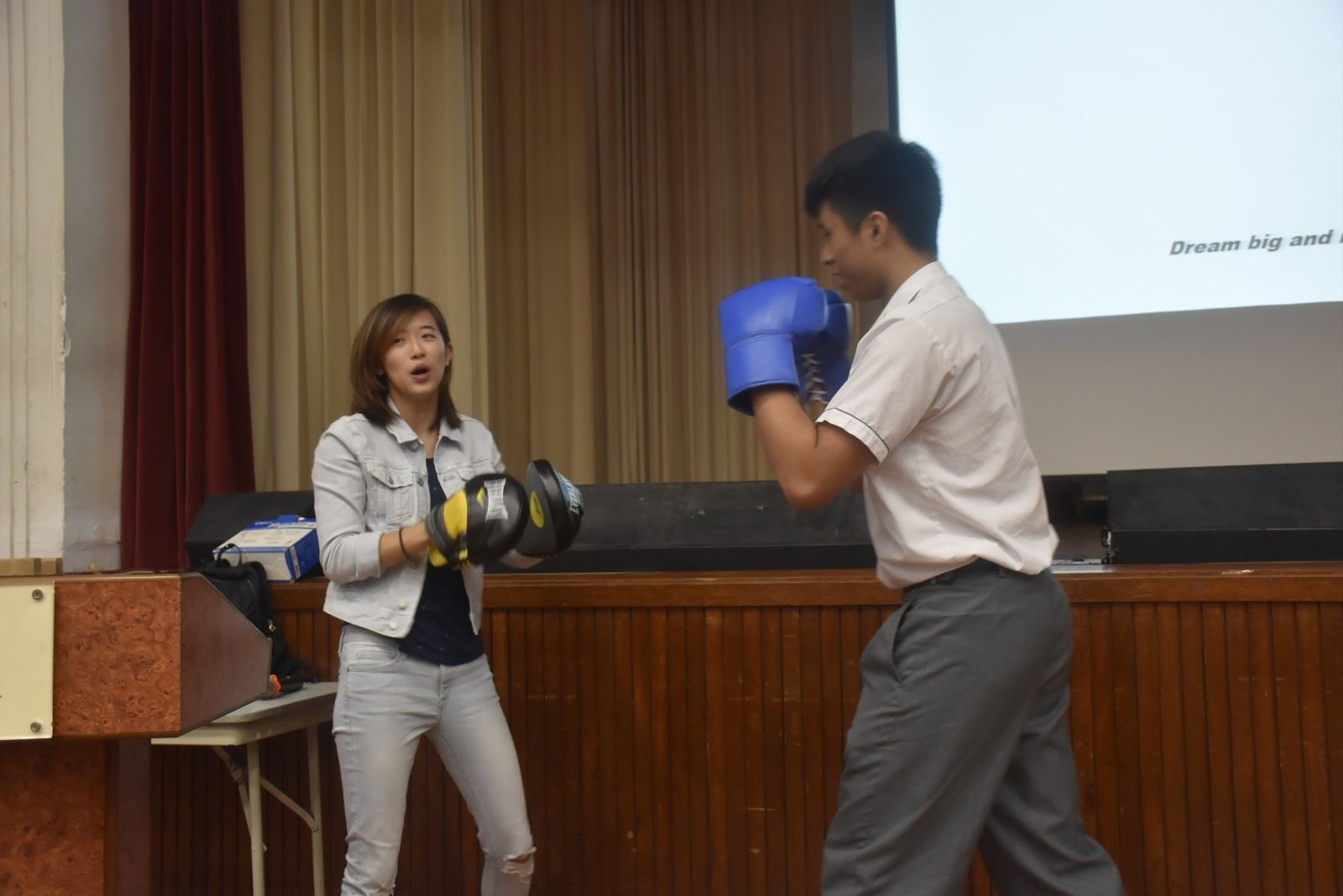 Ms. Lam took our students through her professional boxing journey, shared her ups and downs as well as encouraged our students to never give up in pursuing their dreams in life. F.5 students were all very engaged with her story and at the end, they even got to try out a few punches with this professional boxer! It was a fun and interactive event!