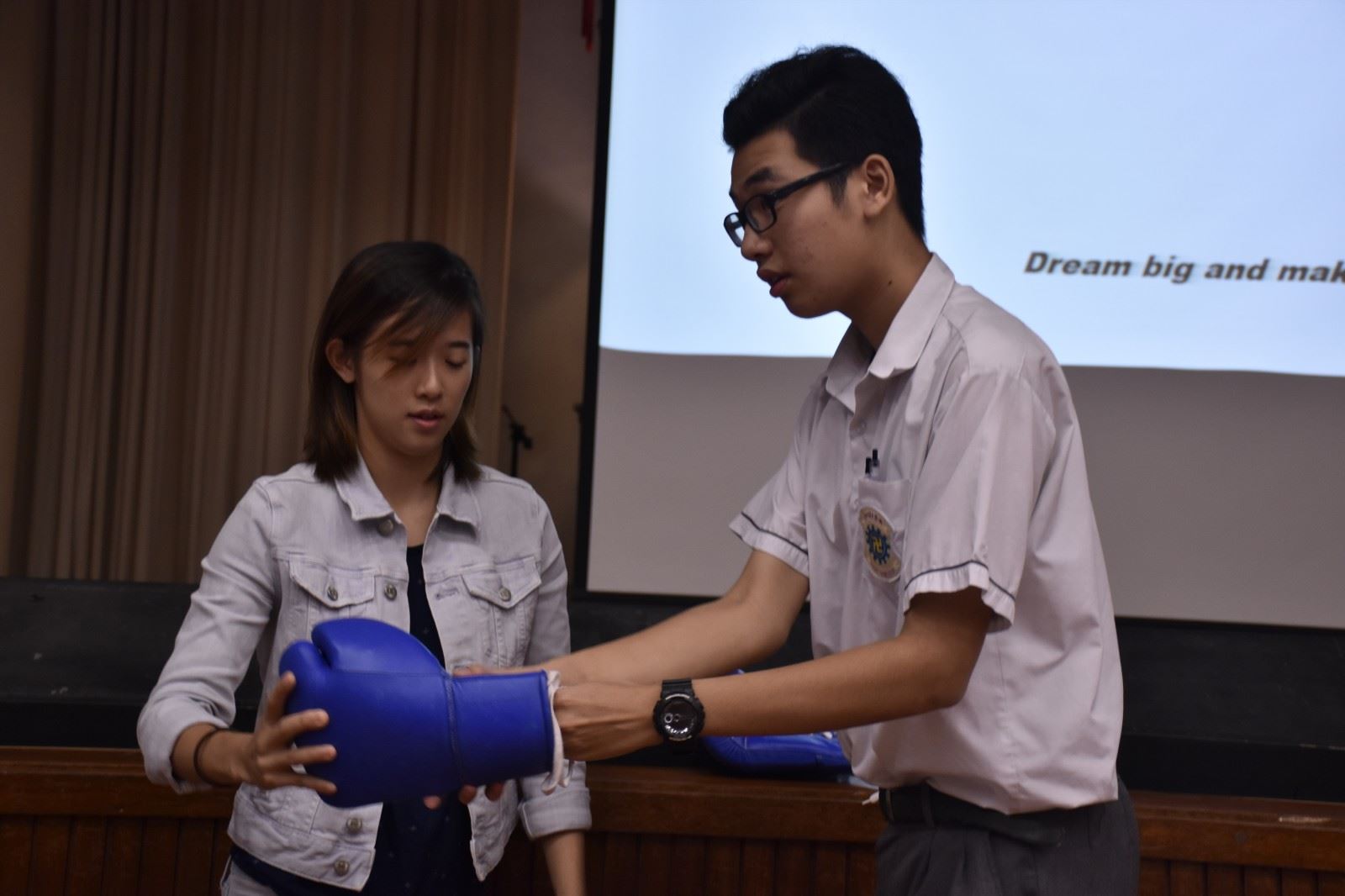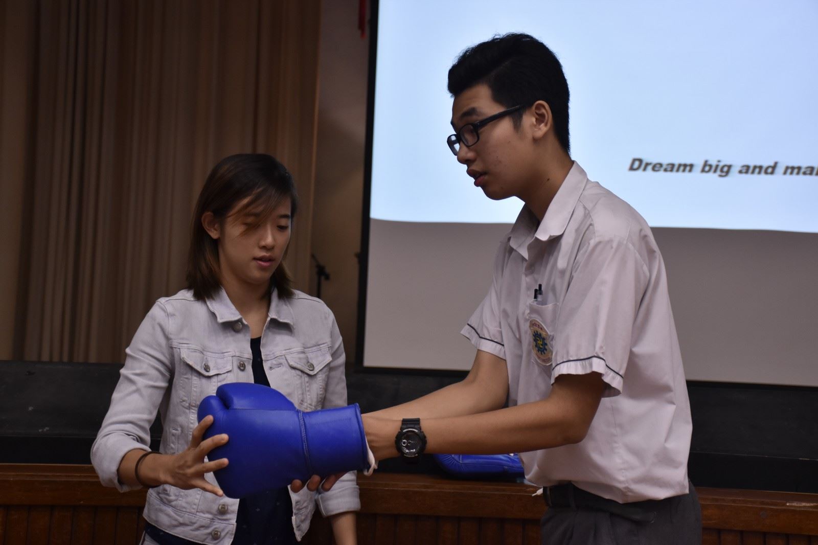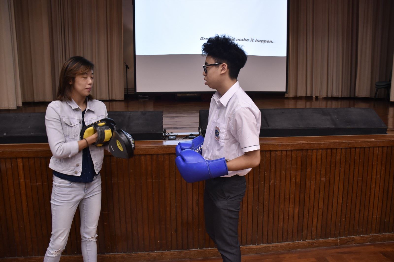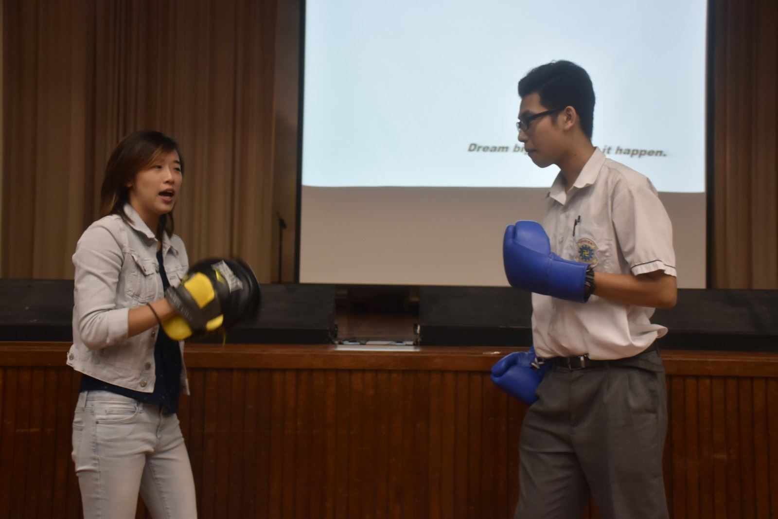Ms. Lam took our students through her professional boxing journey, shared her ups and downs as well as encouraged our students to never give up in pursuing their dreams in life. F.5 students were all very engaged with her story and at the end, they even got to try out a few punches with this professional boxer! It was a fun and interactive event!